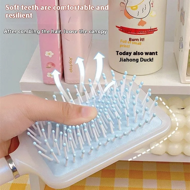 This enchanting Mermaid Princess Airbag Comb combines whimsical design with gentle hair care functionality, making daily styling a magical experience for little ones. The unique air cushion base features soft, flexible bristles that glide smoothly through hair while providing a soothing scalp massage. Perfect for detangling without tears or tugging, this portable hairbrush helps prevent breakage and split ends. The adorable mermaid-themed design with heart accents appeals to young princesses, while the ergonomic handle ensures comfortable grip for both parents and children. Lightweight and compact, it's ideal for on-the-go grooming, travel, or daily home use. The durable construction and easy-to-clean surface make this brush a practical choice for maintaining healthy, tangle-free hair while adding a touch of enchantment to any hair care routine.